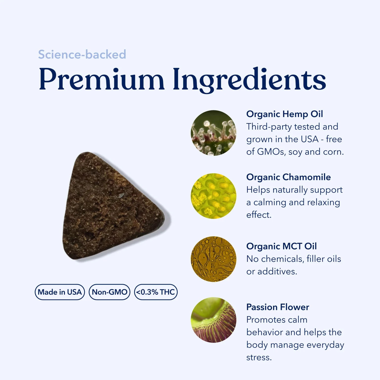 This custom blend of relaxing ingredients is paired with a full-spectrum hemp oil and will help your cat with: