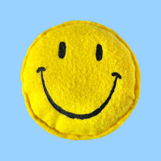 3” classic yellow smiley face catnip toy