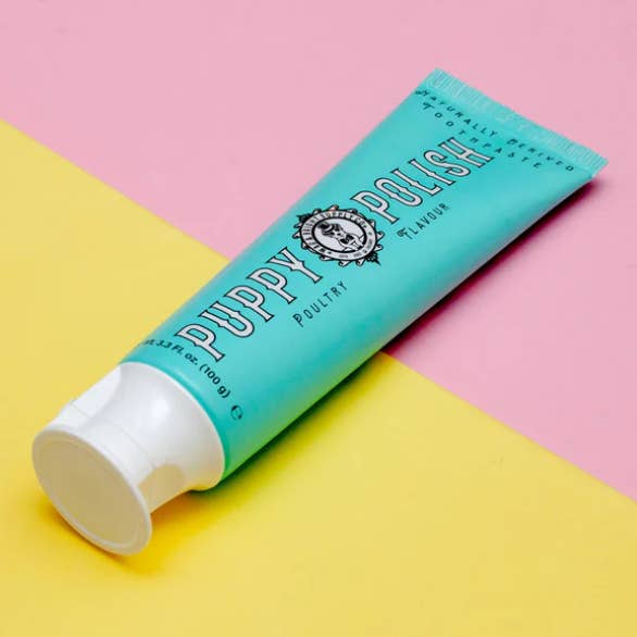 Puppy Polish Toothpaste is safe for dogs of any age.