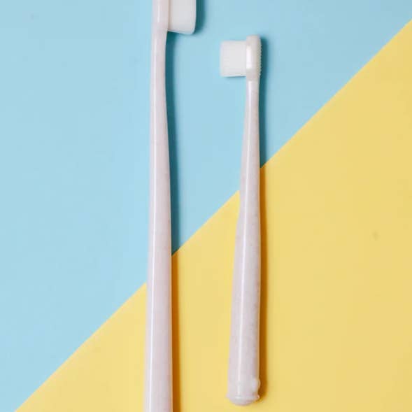 The ultimate softness for your pup! This toothbrush is made from a 60% wheat straw composite material. It has over 10,000+ silky bristles to provide the deepest cleaning action while yet gentle on your dogs sensitive gums.